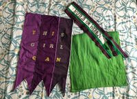 Handmade banner and sash, and fabric from Processions march