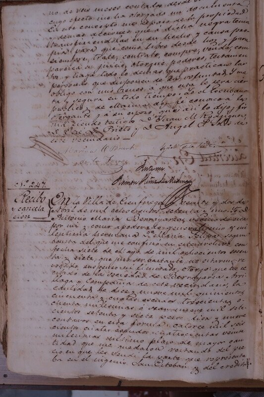Notarised record of Matilde O'Bourke buying her freedom from Marina O'Bourke, Cienfuegos, Cuba 1871.