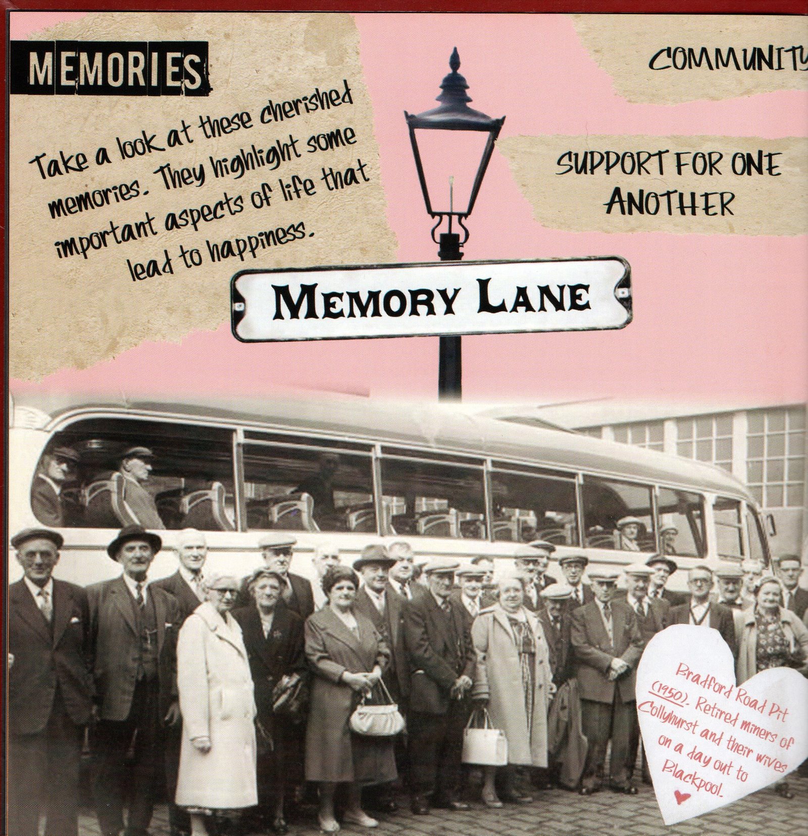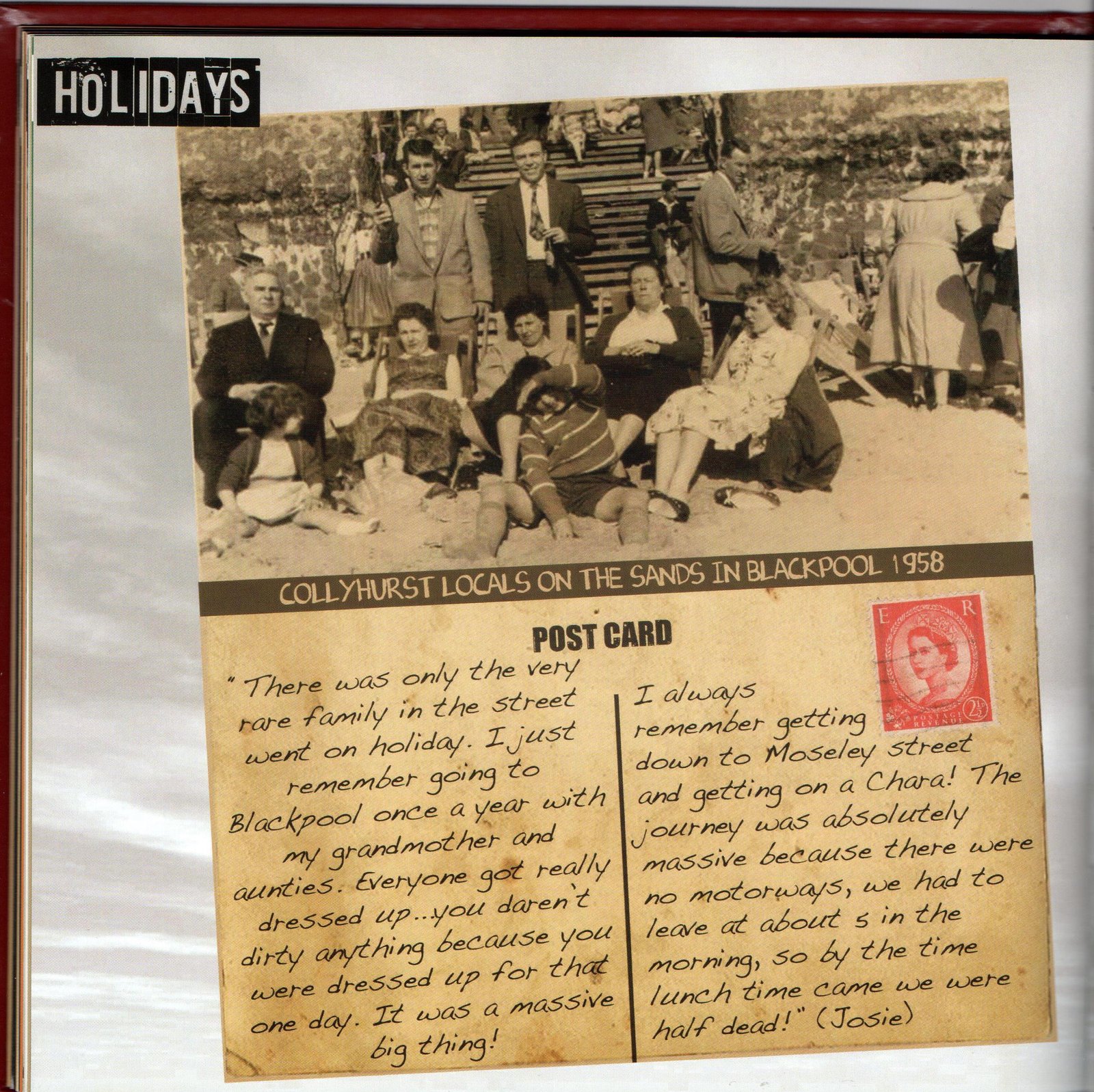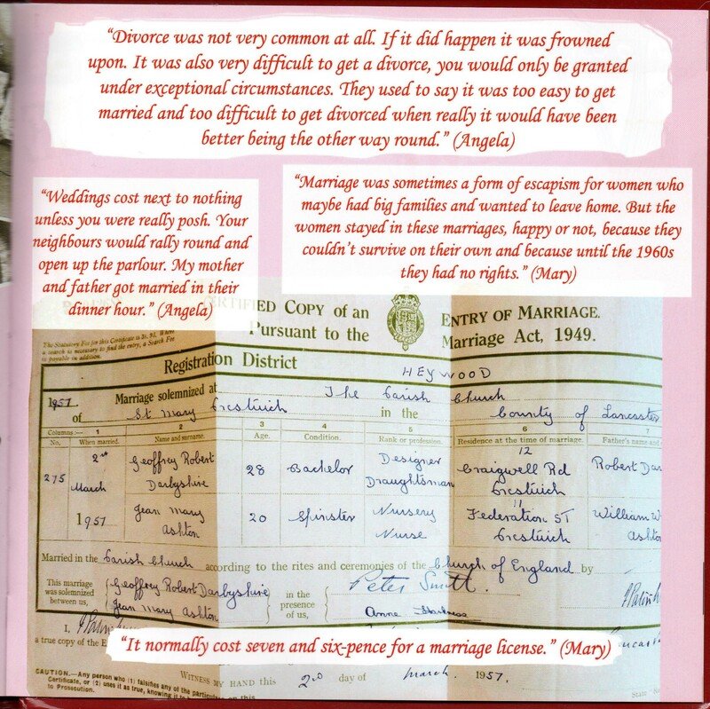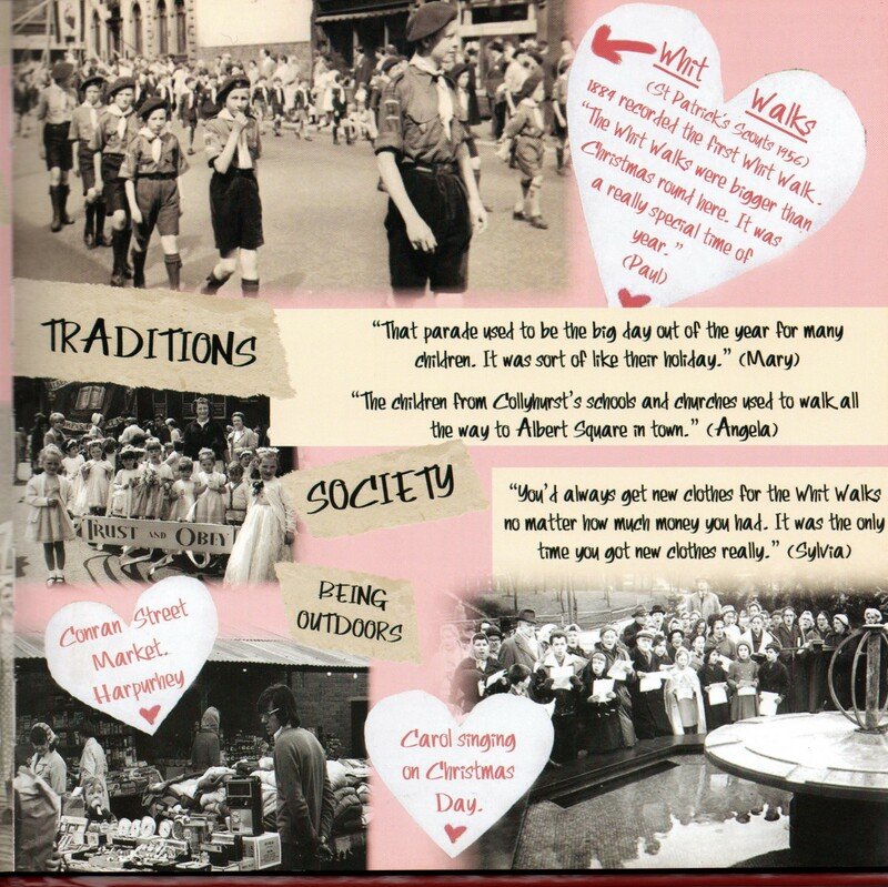 This item includes excerpts from the Once Upon a Time memory book. The book was created using memories of Collyhurst, North Manchester that had been collated by the Once Upon a Time steering group with contributions from local community members. The book includes memories of schooling, war time, religion, entertainment, growing up in poverty, holidays and attitudes toward love and marriage. There are also interactive pages to allow readers to reflect on their own memories. It was published by Manchester Communication Academy and designed by Sophia Huddlestone. The Once Upon a Time (OUAT) project began with the union of two groups: the Manchester Communication Academy and the Irk Valley Tenants and Residents group both based in Collyhurst.