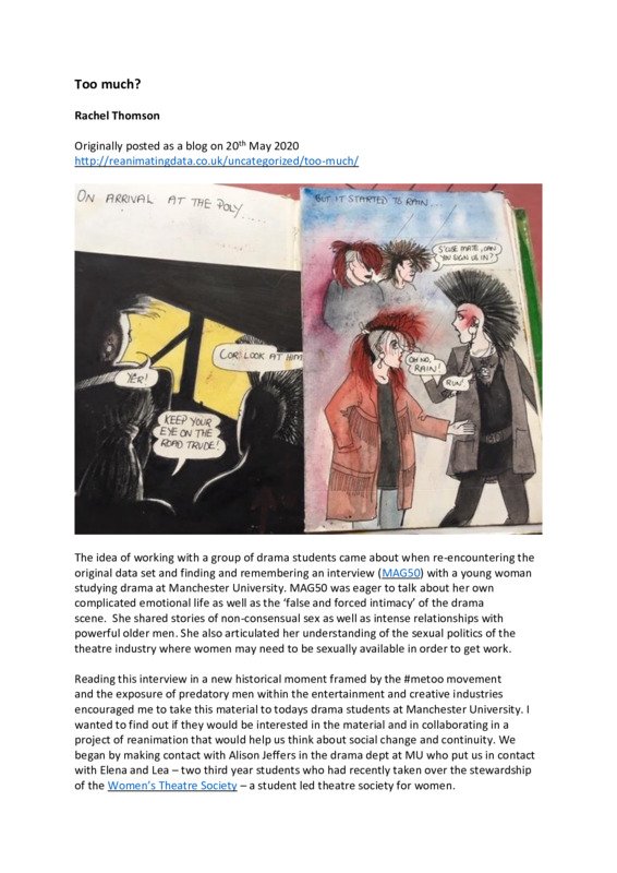 Recording and transcript of a Q and A between Rachel Thomson (original WRAP team member) and members of the University of Manchester's Women's Theatre Society. A blog post by Rachel Thomson reflecting on the session.