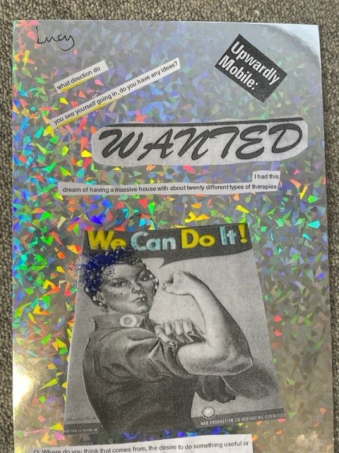 Collage using WRAP data and other archived materials, created at Reanimating Data workshop, held at Imagined Pasts conference, Essex University 15-17 June 2023, organised by Tracey Loughran for CHASE partnership.