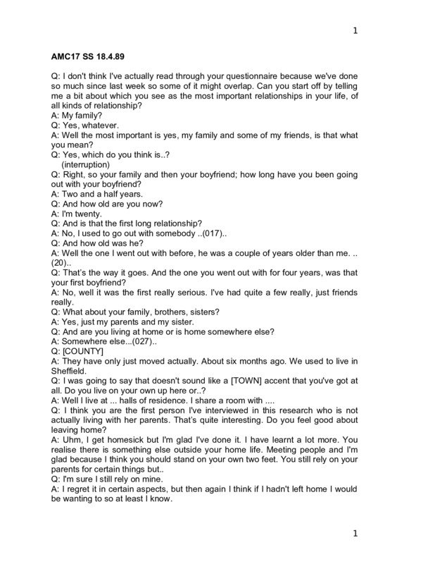 Interview with Robin, 20, White British, middle class. Women, Risk and AIDS Project, Manchester, 1989. Anonymised version (Ref: AMC17)