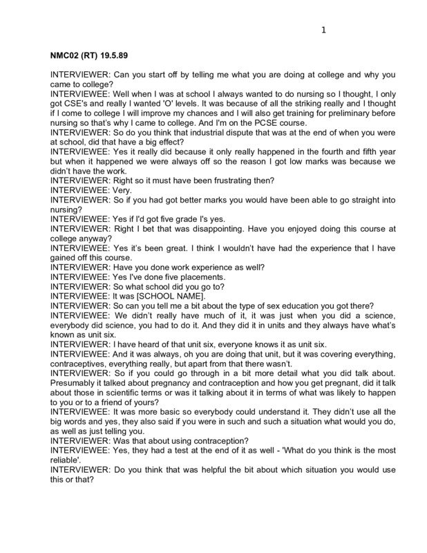 Interview with Diane, 16-17, White British, working class. Women, Risk and AIDS Project, Manchester, 1989. Anonymised version (Ref: NMC02)